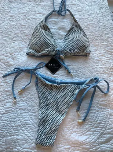 ZAFUL Triangle Bikini Fishnet Tie Bandeau Halter String Bikini Size Medium/6 Material: Polyester+sp... Show more