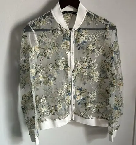 Excellent preloved condition - Zara Basic Collection Women’s Sheer floral Print Bomber Style Spring... Show more