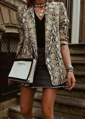 Zara Basic Snake Print Blazer Lined with Faux Pockets Size Large Black - $99 - From Sarah