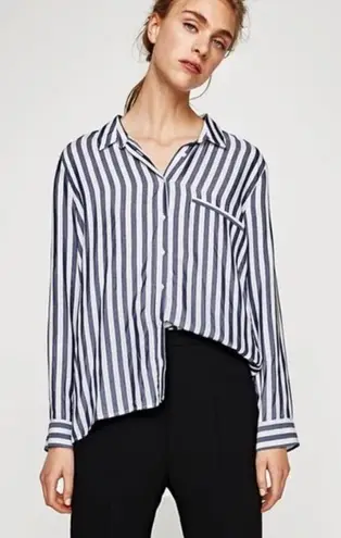 ✨ Zara Basic black and white striped collared button down. Vertical stripe on body, horizontal stri... Show more