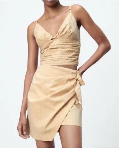 Chic and modern two-piece Zara set in a soft beige pinstripe. The top features a ruched bodice with... Show more