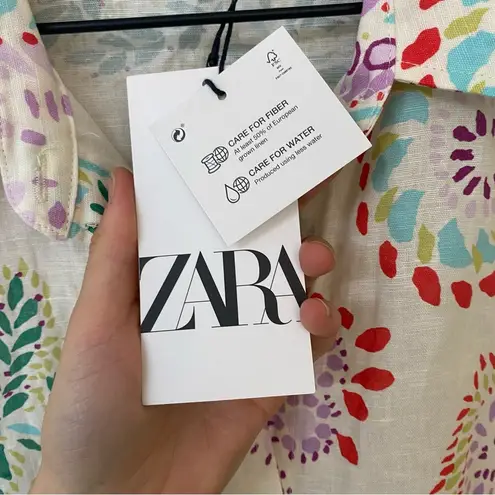 NWT Zara Summer Print Linen Blend Button Down Shirt - US Large 53% linen, 47% cotton Tropical "fis... Show more