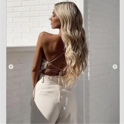 Zara Cream Floral Sequined Bodysuit. Bodysuit with a straight neckline and thin crossover adjustable... Show more