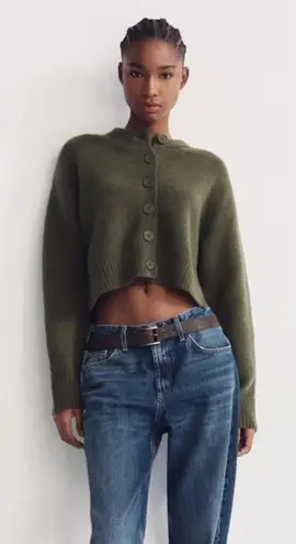 Olive/khaki cropped cardigan from Zara. Size S, only worn once. Stretchy warm material