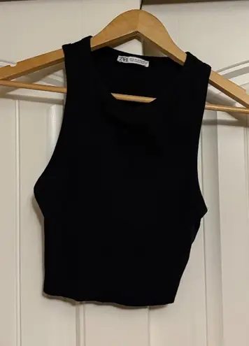 Classic Tank Top/ Cami from Zara Ribbed Black Size Medium Cropped