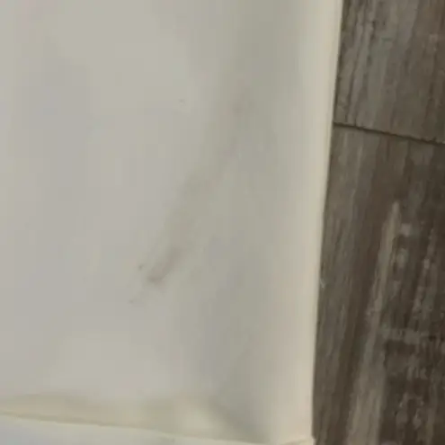 Preowned cuffed white pants Belt loop Pockets Scuff mark on the back on one leg Stock photo is simil... Show more