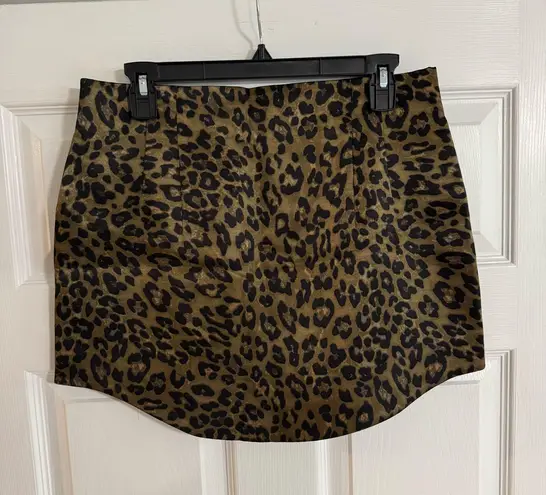 Zara Curved Micro Mini Skirt In Satin Cheetah Leopard Print Size L In EUC Laying flat ~15.5”