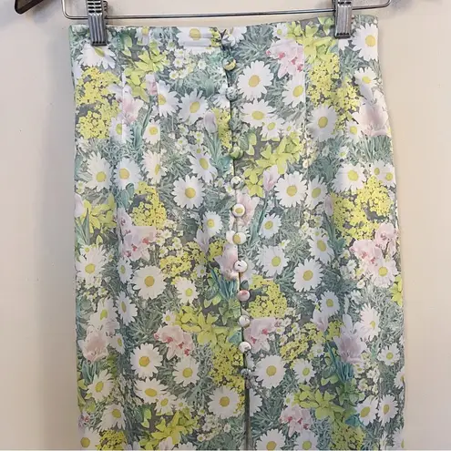 Excellent condition. Green, white, yellow & pink floral print. Daisy print. Midi length. Front slit.... Show more