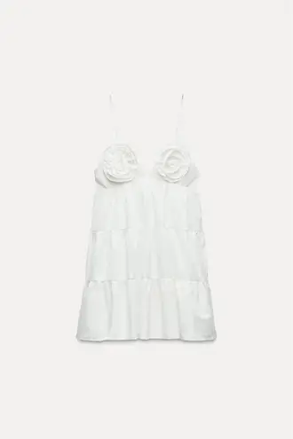 Zara dress mini Boho floral ruffle Poplin flowy cotton white summer vacation - $89 New With Tags - From Patricia