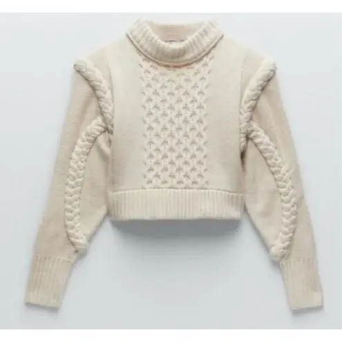 Brand: Zara Description: nylon wool blend mock neck shoulder pad crop sweater Size: small Color: e... Show more