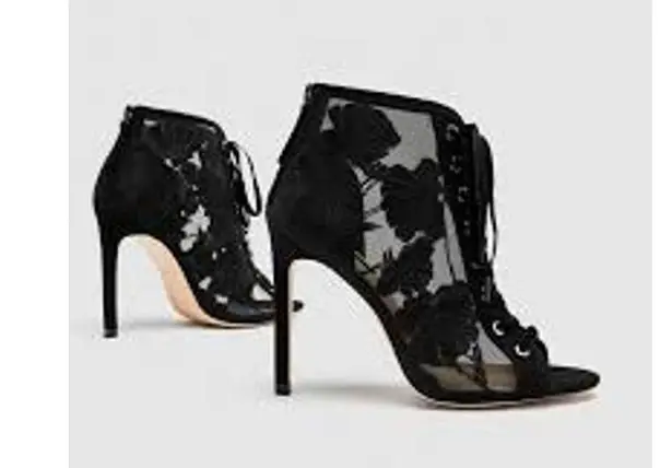 ZARA sheer mesh booties with embroidery in black Size 7 Lace up style with open toe Velvet laces 4... Show more
