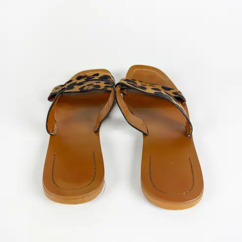 Zara Faux Vegan Cheetah Leopard Animal Calf Hair Print Flat Sandals Shoes Brown Gently pre loved co... Show more