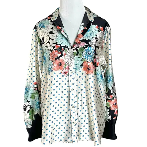 Zara Floral Polka Dot Button Down Blouse Size XS Laying Flat / Approximately Armpit to Armpit... Show more
