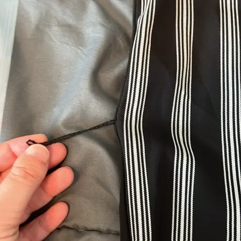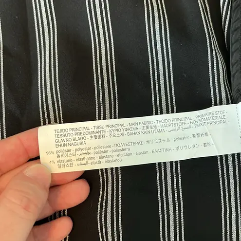 Size XS Black/white stripe with satin collar Unlined Belt loop, no belt included Flowy Open front... Show more
