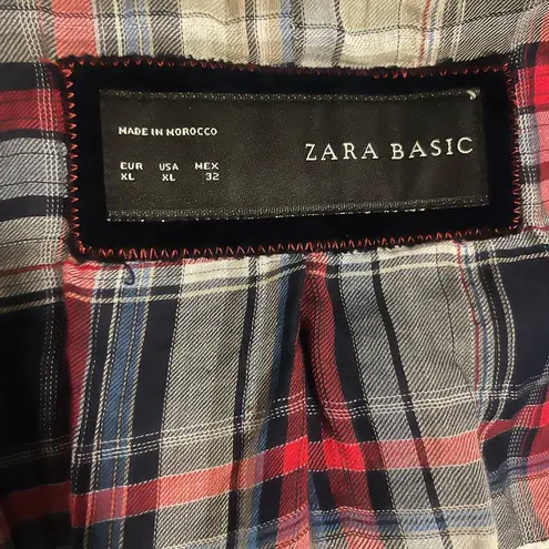 Zara Basic blazer with vibrant plaid lining. Features red, blue, and white tones. Ideal for versatil... Show more