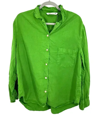 Zara Green Lyocell Linen Blend Button Down Shirt Frayed Collar Long Sleeve NWOT in Excellent Conditi... Show more