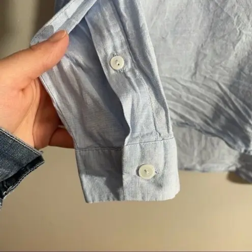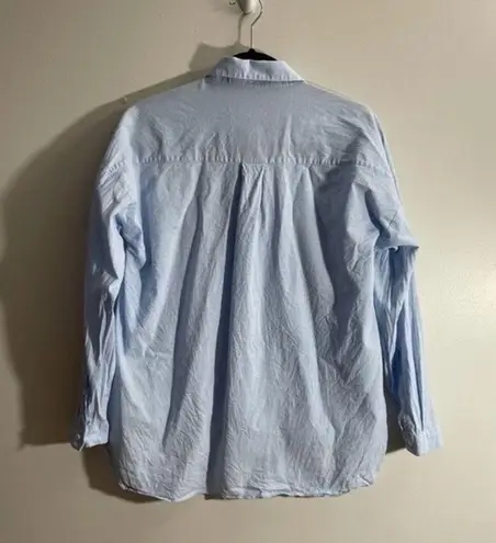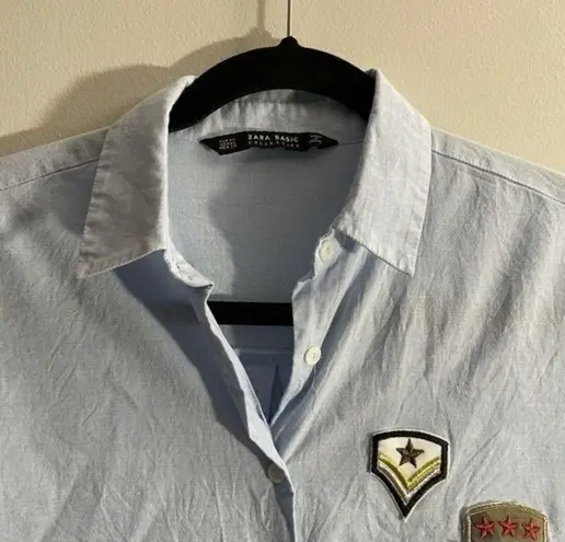 Zara light blue button down army patched embroideries Size XS In good condition Button down Hi low... Show more