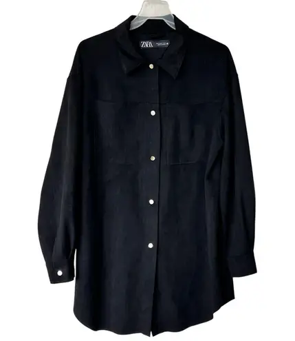 ZARA black snap button faux suede shirt jacket size M Approx Measurements Length 34'' Armpit to Arm... Show more
