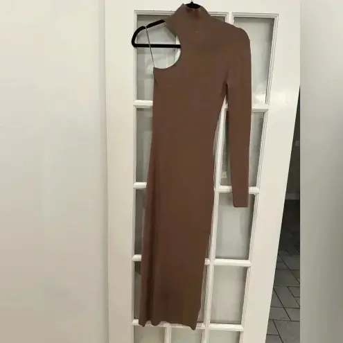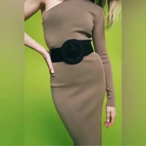 Zara Mink Brown Bandage Knit Asymmetrical Bodycon Midi Dress Size S EXCELLENT condition, no found f... Show more
