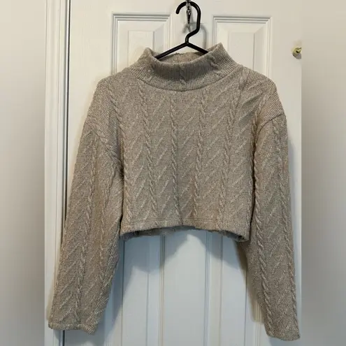 Long sleeves Braided detail Crop Top 73% Polyester/26%Viscose/1% Elastane Cream tan color Preloved