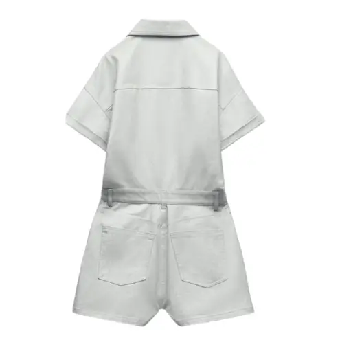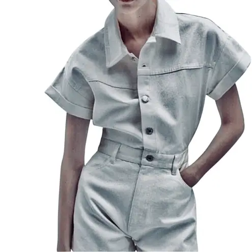 Light Blue/Gray/Silver Size Medium Lapel collar and turned-up short sleeves. Side and back pockets.... Show more