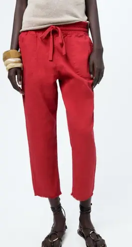 Pants with a mid waist made of lyocell and cotton. Adjustable elastic waistband with drawstring. Fro... Show more