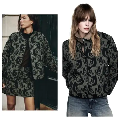 Excellent preowned condition no flaws Olive green with black abstract print Front snap button clo... Show more