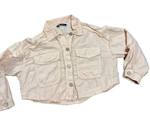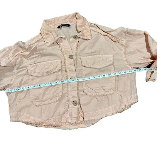 Zara peach pink button up Shirt jacket fringe hems linen blend sz M In great preowned condition Fri... Show more