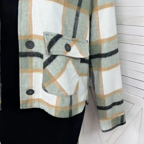 Zara Plaid Flannel Wool Blend Crop Shacket Jacket Green Ivory Size Large Khaki green, white, bla... Show more