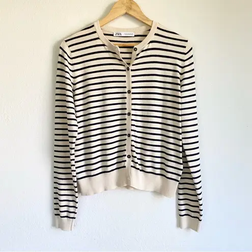 Zara cardigan in a neutral cream with black stripes. Super soft. Perfect for layering. Like new cond... Show more