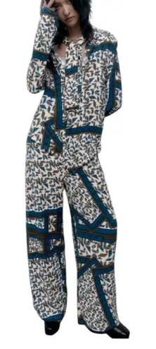 Zara Printed Blue/Brown Pants Set. Top back top knot. Approx measurements TOP: Pit to Pit 18"", Leng... Show more