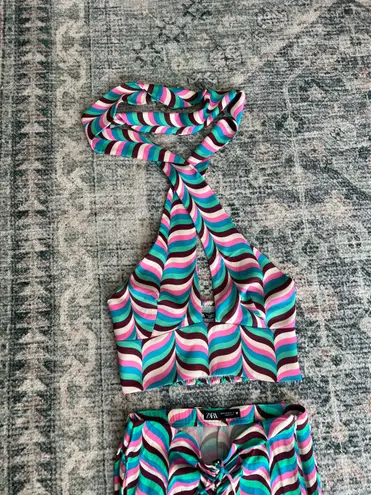 Zara psychedelic multicolor wide leg flare halter top two piece set M Worn once. Perfect for summe... Show more