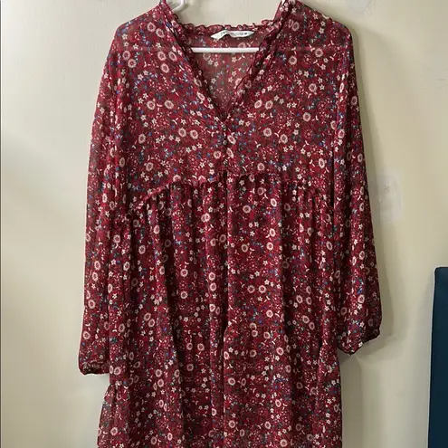 Chic red dress from Zara with floral pattern. Perfect for any occasion. The dress features a v-neck... Show more