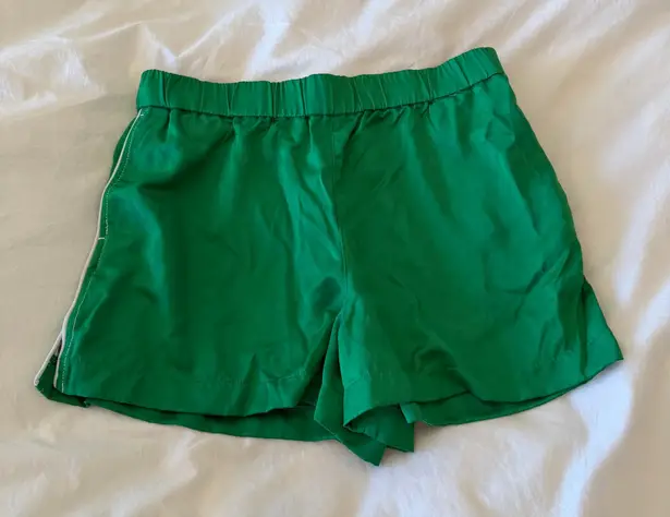 Designed for a bold retro look, these Zara satin shorts feature a vibrant green hue with a silky fin... Show more