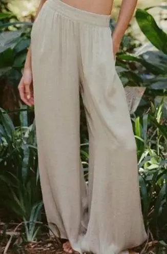 Zara satin effect Beige Wide Leg Palazzo Pants elastic waist lightweight flowy Tan - $30 - From Natali