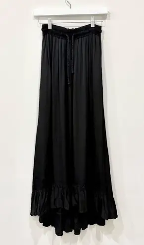 Zara Satin Pull On High Waisted Drawstring Ruffle TrimLong Skirt Black Womens S