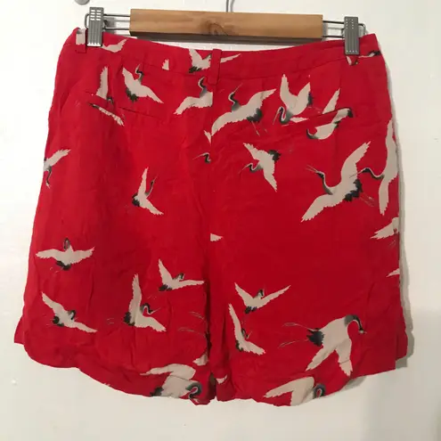 Excellent red women's shorts, combination with white birds, small tweezers in front and pockets on t... Show more