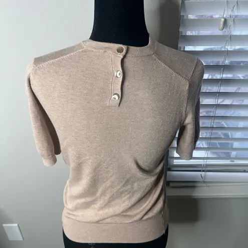 ZARA Short sleeve sweater small gold button closure color oatmeal shade very neutral goes with every... Show more
