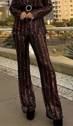 Keywords: sequin pants, flare trousers, wide leg pants, disco glam, glitter pants, party wear, festival outfit, statement pants, clubwear, holiday pants, New Year's Eve, Zara sparkle, 70s inspired, retro revival, night out, performance wear, bold fashion, trendy trousers, dance floor style, metallic glam, halloween, night out, birthday