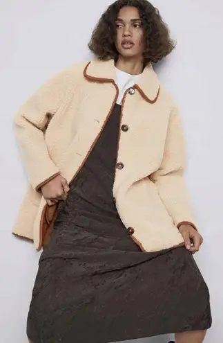 Zara Tan Brown Cream Sherpa Button Down Coat Jacket New with tags Size XS (can fit up to a size medi... Show more
