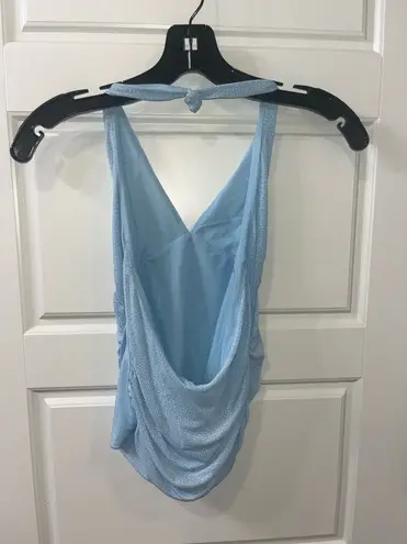 Tied at the top a tiny bit to make higher on chest but can be untied