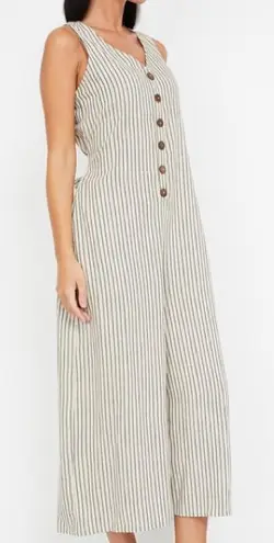 Pre-loved good condition Elevate your style with this chic striped gray and white sleeveless jumpsu... Show more