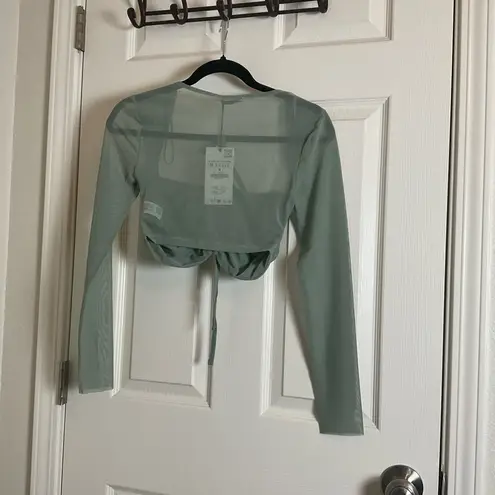 TULLE CROP TOP size medium Semi-sheer top with adjustable crossed straps at collar and long sleeves... Show more