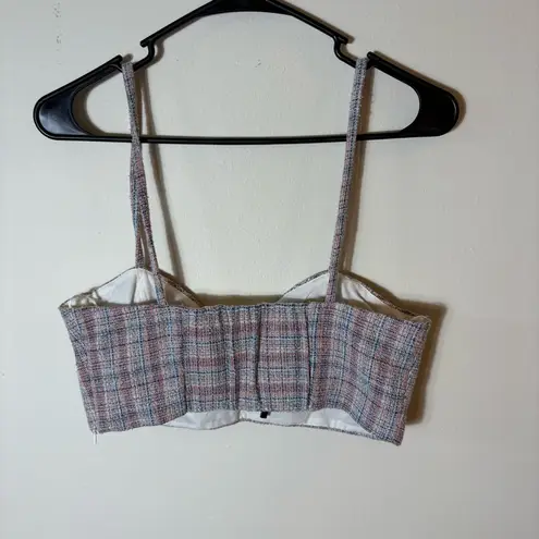 Zara Tweed Plaid Crop Top Size Medium NWOT. Chic Zara tweed-style crop top in a multi-color plaid pa... Show more