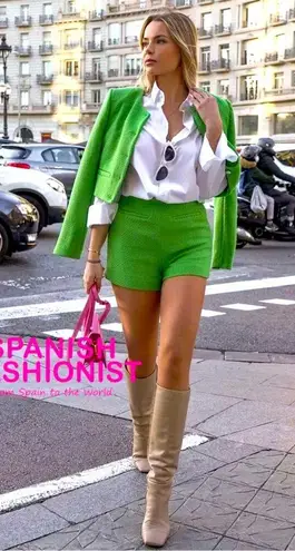 High waist shorts with false front welt pockets. Hidden in-seam side zip closure. Brand new with... Show more