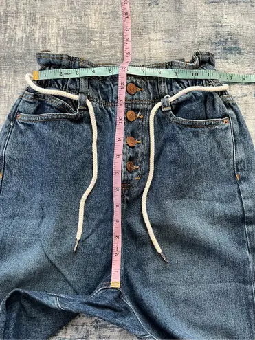 Zara Ultra High Rise Button Fly Belted Cinched Elastic Waist Mom Jeans Size 2 Medium blue wash deni... Show more