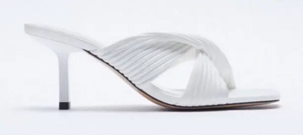 ZARA White Pleated Crossover Strap Heeled Mules Sandals Size 39 (US 8.5) Size: 39 (US 8.5) Color: W... Show more