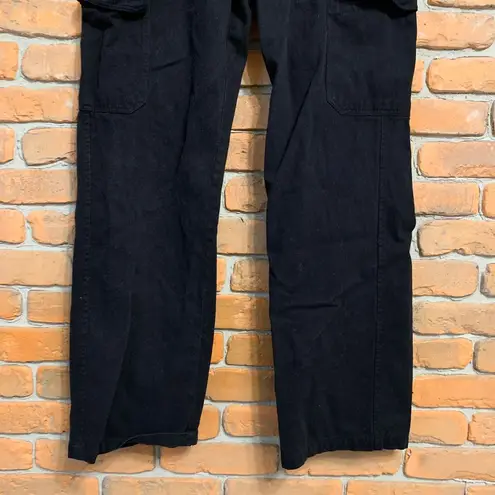 Classic black cargo pants from Zara featuring a relaxed wide-leg silhouette. Utility pockets on side... Show more