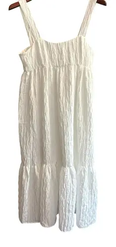 This Zara dress is a voluminous, textured weave midi dress in white, designed for women. It features... Show more