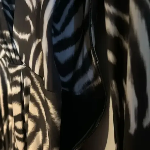 NWT Zebra mini wrap front dress size small. Has a zipper on left side under armpit. 95% polyester.... Show more